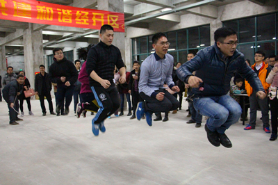 “加油!加油!加油!”活動現場熱鬧歡騰,加油吶喊聲、哨聲、掌聲,聲聲不斷。激烈的拔河比賽、五人板鞋、集體跳繩等團體比賽項目得到了全體干部職工的熱捧。比賽分成八個小組進行,采用積分賽制,最終以積分最多者為勝。