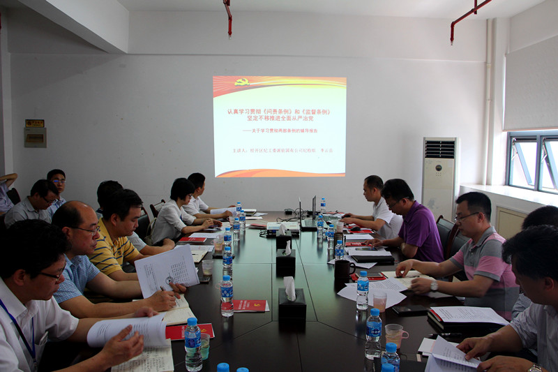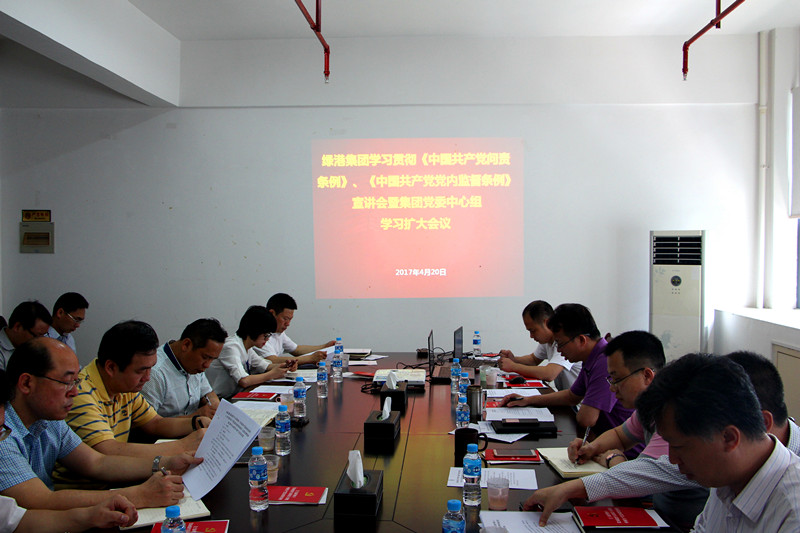 為進一步加強廉政文化建設(shè),不斷提高黨員干部廉潔從業(yè)意識,推進廉潔從業(yè)教育工作,以黨風(fēng)廉潔建設(shè)新成效促進綠港集團健康發(fā)展,4月20日上午,綠港集團黨委召開學(xué)習(xí)貫徹《中國共產(chǎn)黨問責(zé)條例》和《中國共產(chǎn)黨黨內(nèi)監(jiān)督條例》(以下簡稱“兩部條例”)宣講報告會暨中心組學(xué)習(xí)擴大會議,會議由綠港集團黨組書記、董事長楊東主持,經(jīng)開區(qū)紀工委派駐國有公司紀檢組組長李云岳就“兩部條例”進行了宣講,綠港集團全體班子成員、集團本部中層以上管理人員、子公司領(lǐng)導(dǎo)班子約50人參加會議。