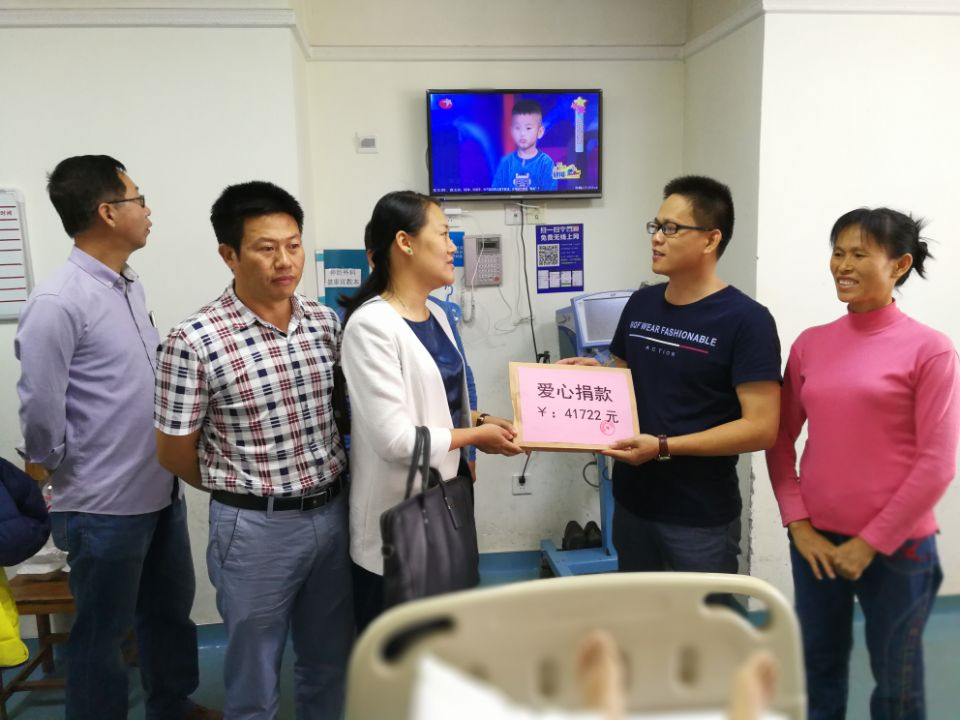 吳海召激動(dòng)地說(shuō):“善款有價(jià),愛(ài)心無(wú)價(jià)。綠港集團(tuán)和經(jīng)開(kāi)區(qū)的捐款正體現(xiàn)中華民族團(tuán)結(jié)互助的精神和無(wú)私博愛(ài)的優(yōu)良傳統(tǒng),非常感謝所有愛(ài)心人士的熱情幫助”。蒙福東副總經(jīng)理讓家屬們?cè)鰪?qiáng)信心,安心照顧好吳海有,有困難及時(shí)告知公司,綠港集團(tuán)一定盡力協(xié)調(diào)解決,能幫就幫。