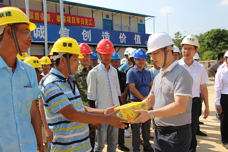 綠港集團(tuán)黨委書記、董事長、總經(jīng)理龔國強(qiáng)給項(xiàng)目一線人員送清涼