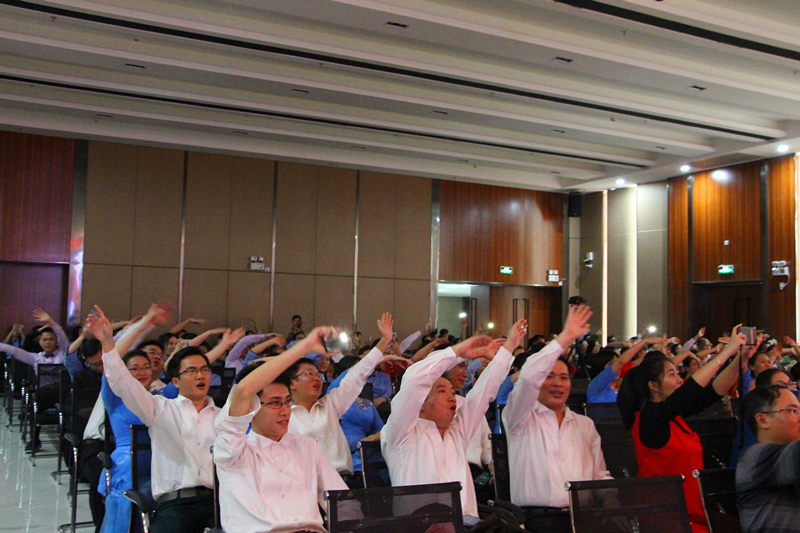 臺(tái)下觀(guān)眾熱情高漲,展現(xiàn)集團(tuán)公司全體員工團(tuán)結(jié)一心的良好風(fēng)貌