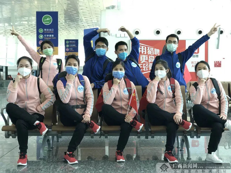 今天11時(shí)30分,廣西支援湖北第一批醫(yī)療隊(duì)153人出發(fā)去武漢天河機(jī)場,乘坐14時(shí)的飛機(jī)返程。