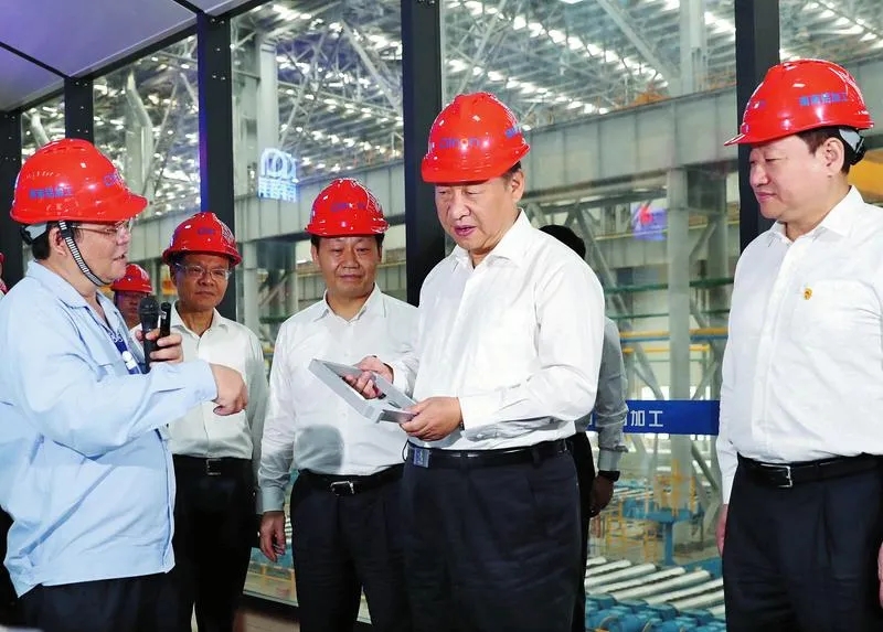 2017年4月19日至21日,中共中央總書記、國家主席、中央軍委主席習近平在廣西視察。這是2017年4月20日上午,習近平在廣西南南鋁加工有限公司了解企業(yè)生產(chǎn)情況。 新華社記者 謝環(huán)馳 攝